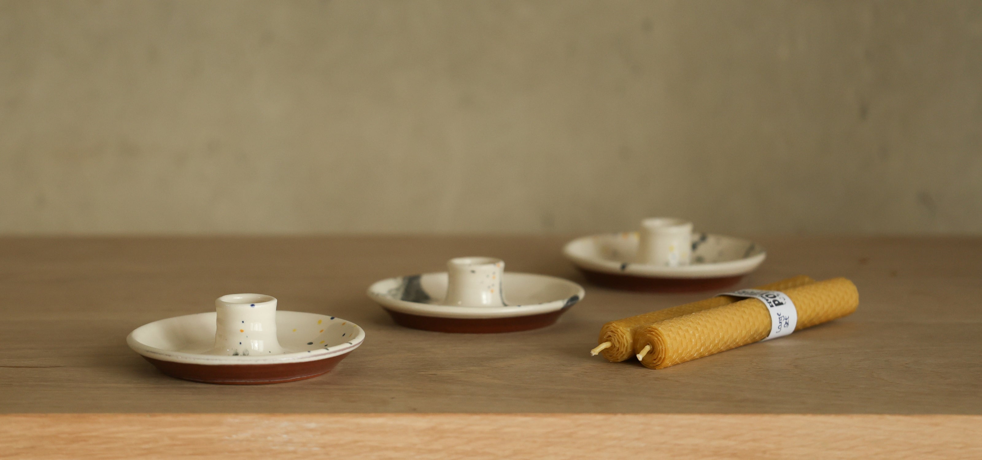 Brighten up your home decor with our ceramic candle holders. Each holder is thoughtfully designed to complement our hand-rolled beeswax candles, providing a stable and stylish base. The unique patterns and organic shapes add a touch of creativity, making these holders perfect for any setting.