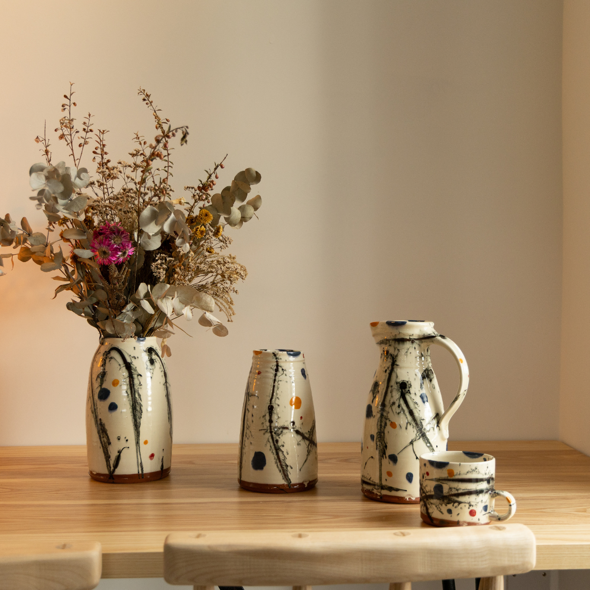 Pour with style using our handcrafted ceramic jug. Perfect for serving your favourite beverages, this jug combines functionality with a distinctive artistic design.