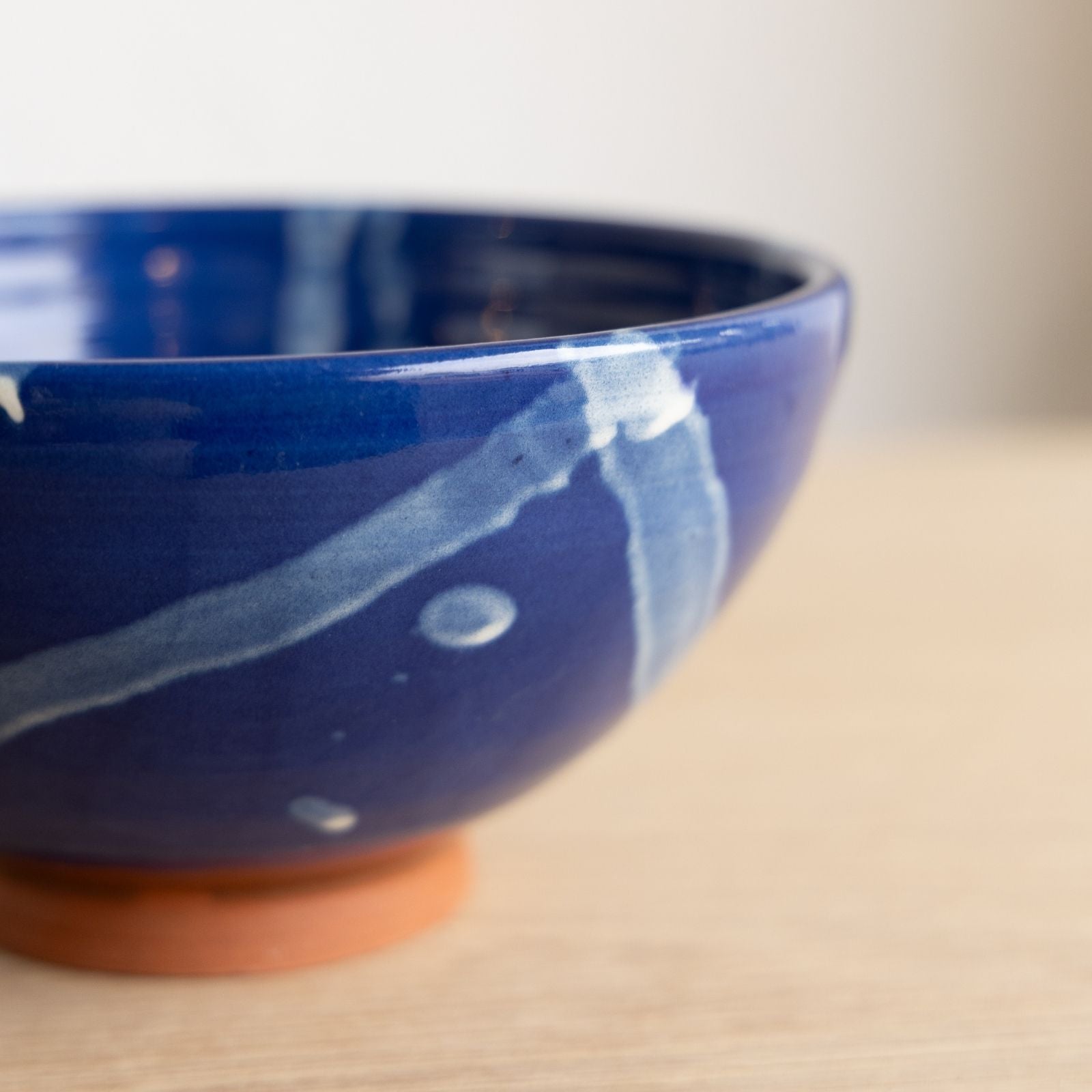 This stunning handcrafted ceramic ramen bowl brings both style and function to your dining table. Featuring a deep, rich blue glaze and unique brushstroke design, each bowl is one-of-a-kind. The smooth, glossy interior is perfect for holding hearty portions of ramen, soups, or noodle dishes, while the natural terracotta base adds a warm, earthy touch to the design.